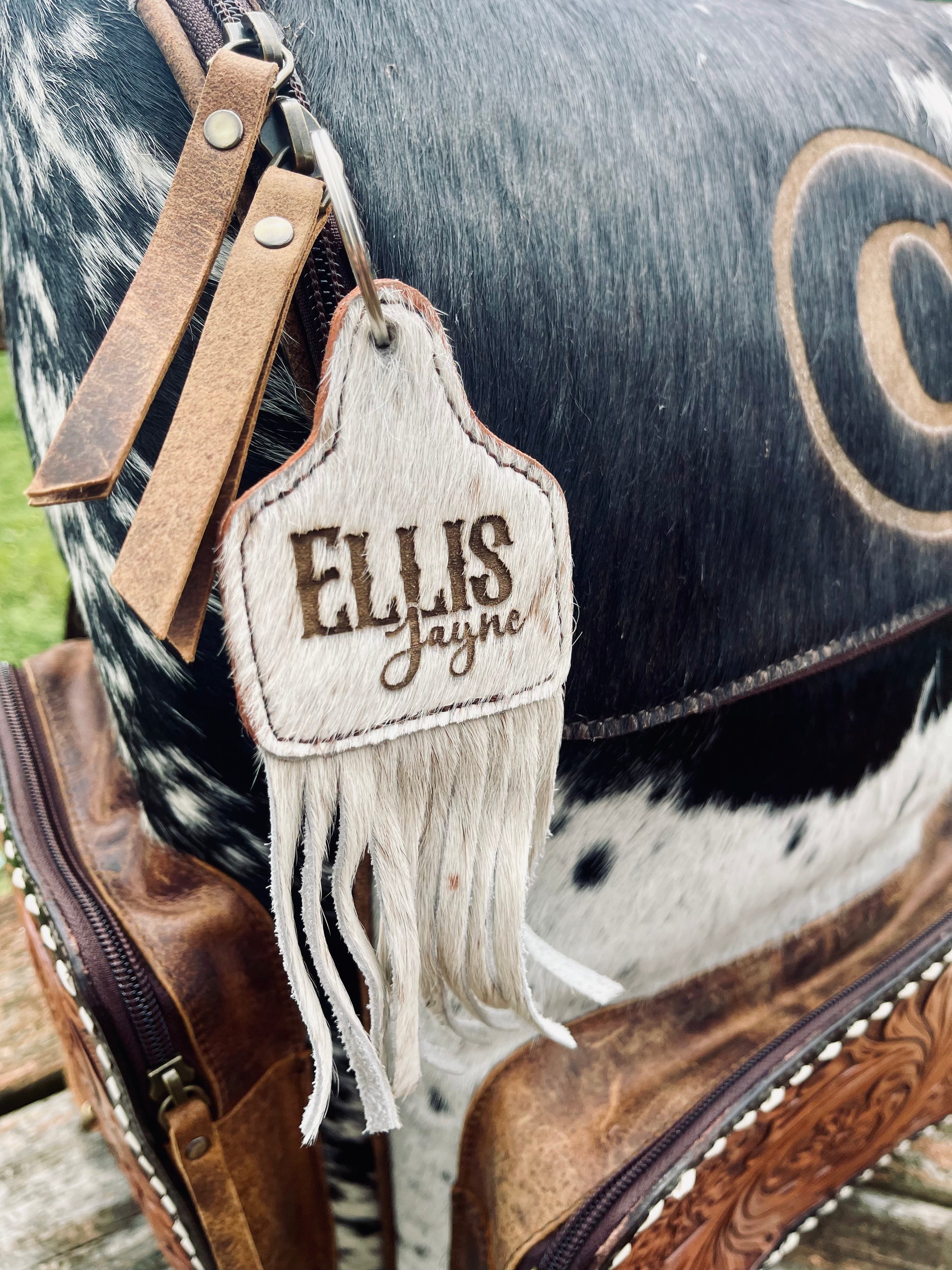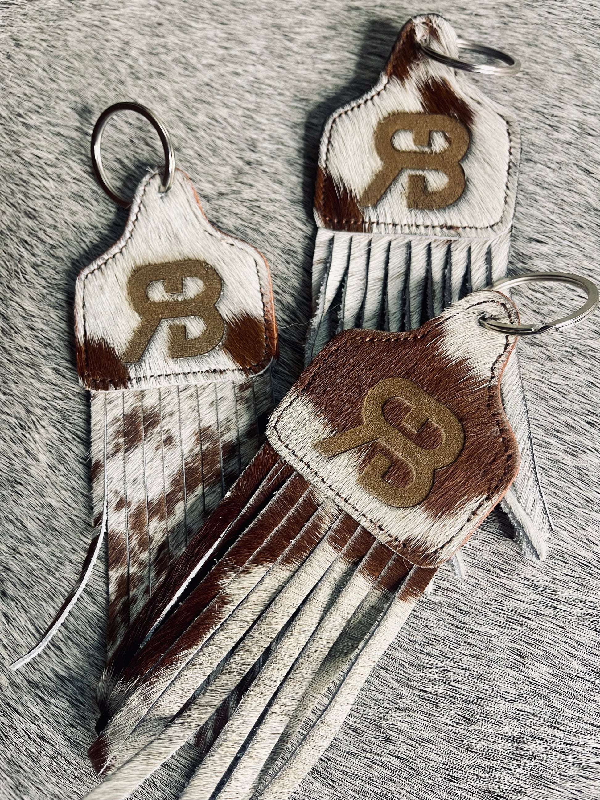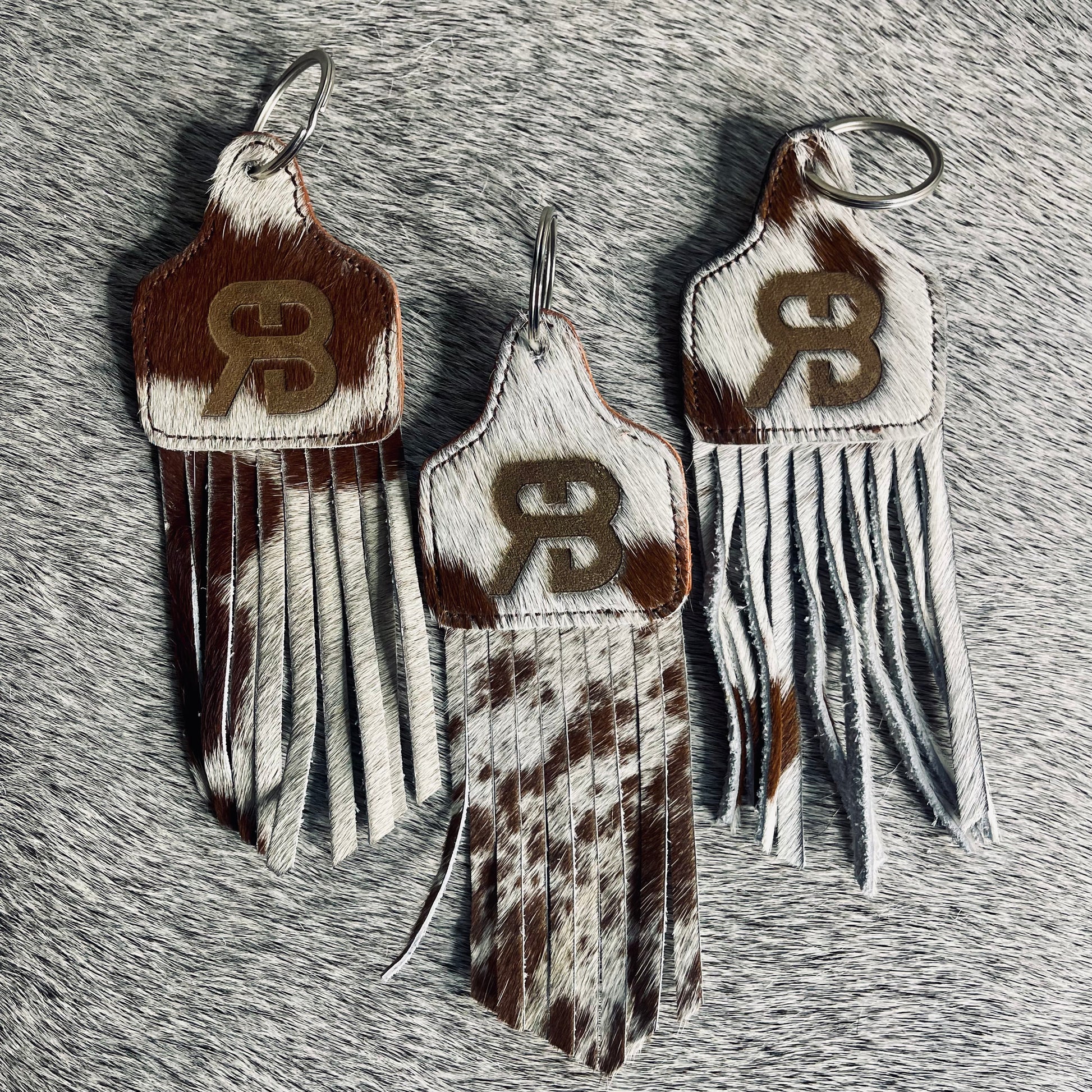 Add a little western flair to your keys, bags, or purses with our handcrafted cowhide fringe keychain. Each piece features genuine cowhide, making every keychain completely unique with its own natural markings and color variations. The soft leather fringe adds the perfect rustic touch while the sturdy key ring keeps your essentials secure.